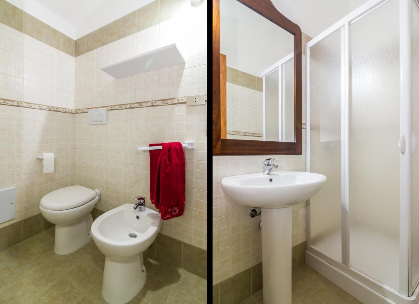 Ogni alloggio presenta un bagno privato con bidet, l’aria condizionata, una TV a schermo piatto e un frigorifero.