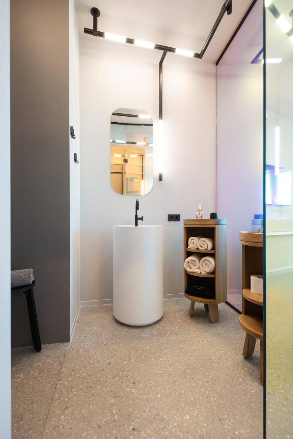 Suite. This suite provides a pool with a view. Featuring a private entrance, this air-conditioned suite comprises 1 bedroom and 1 bathroom with a walk-in shower and a bidet. This wheelchair accessible suite features soundproof walls, a seating area with a flat-screen TV and a roll-in shower. The unit offers 1 bed. ;