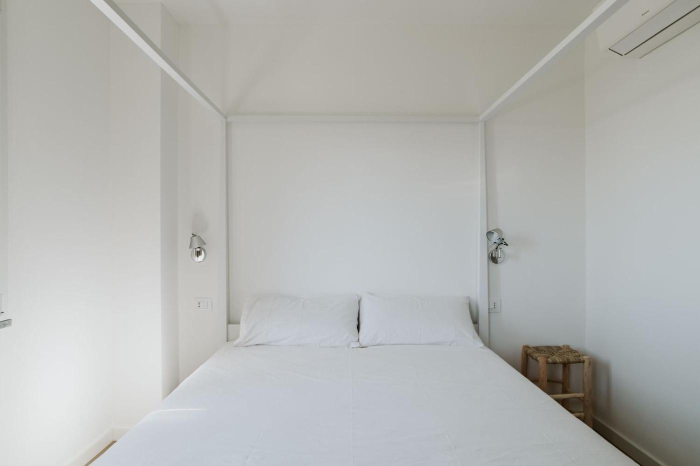 Camera Matrimoniale con Balcone. Camera matrimoniale dotata di aria condizionata, armadio, balcone con vista mare e bagno privato con doccia. L’alloggio presenta 1 letto.