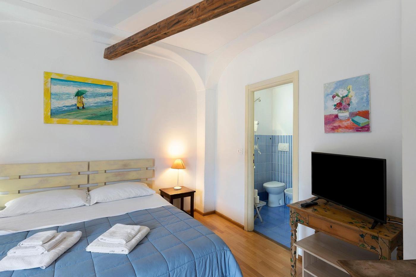 Camera Quadrupla con Doccia. The quadruple room offers air conditioning, a private entrance, as well as a private bathroom featuring a shower and a hairdryer. This quadruple room provides a safe deposit box, a TV and garden views. The unit offers 3 beds.