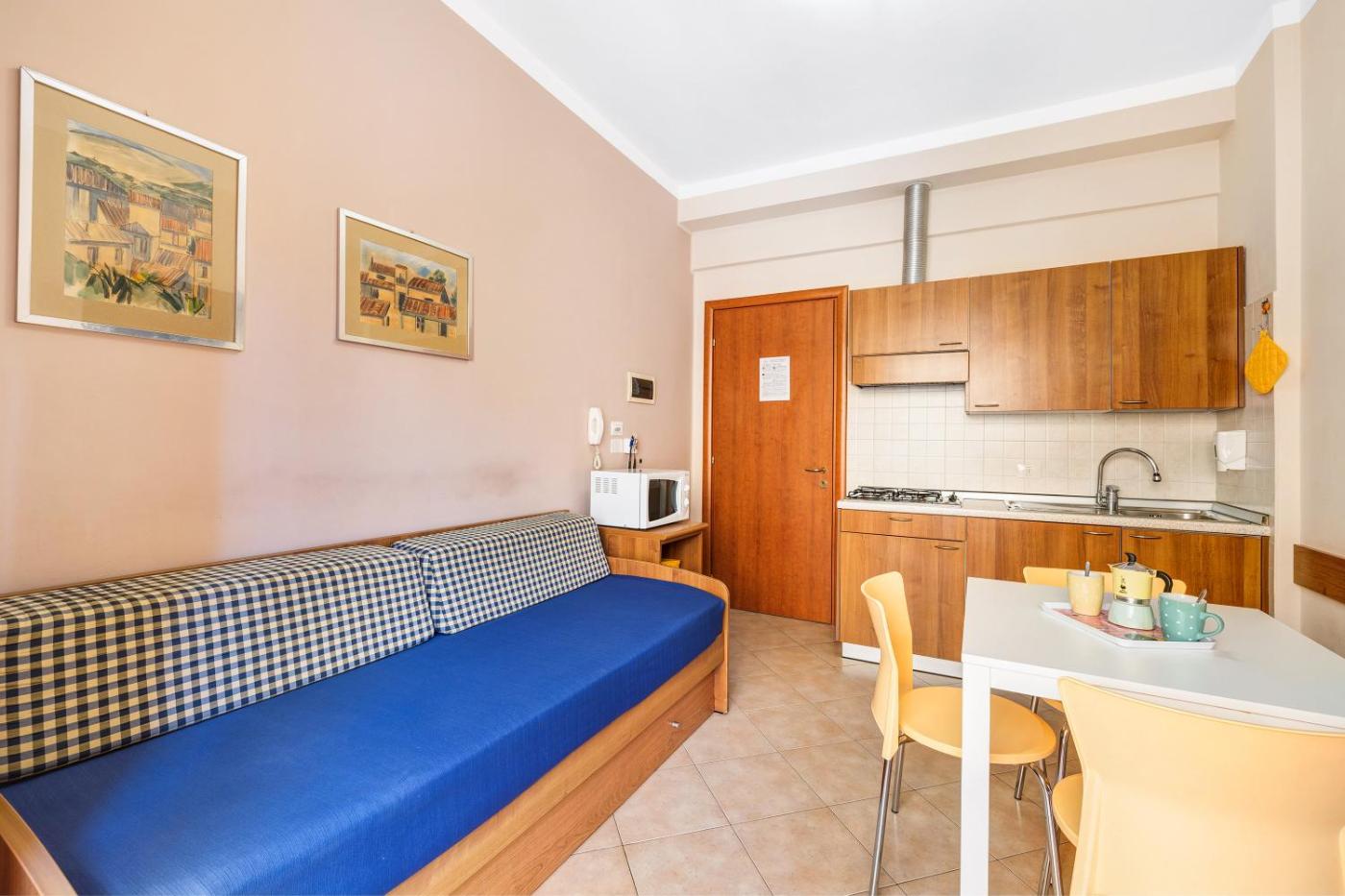 Questo appartamento con aria condizionata comprende 1 camera da letto, un soggiorno, una cucina con utensili piĂą microonde, e 1 bagno con doccia edi cortesia. Presso questo appartamento troverete asciugamani e lenzuola in dotazione.