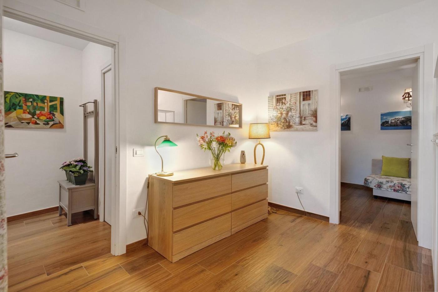 Appartamento Deluxe con 2 Camere da Letto e Vista Giardino. Featuring a private entrance, this air-conditioned apartment is comprised of 2 living rooms, 2 separate bedrooms and 2 bathrooms with a shower and a hairdryer. The apartments kitchen, which features kitchenware, is available for cooking and storing food. This apartment offers a coffee machine, a TV with cable channels and garden views. The unit offers 4 beds.