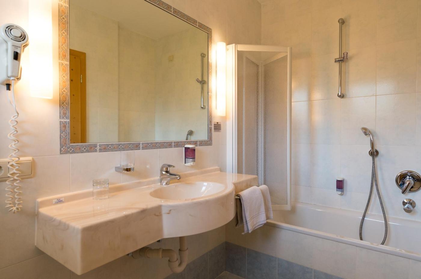 Le camere presentano pavimenti in moquette e un bagno con asciugacapelli. La maggior parte delle sistemazioni si faccia sui boschi, mentre alcuni alloggi vantano anche un balcone con viste sui gruppi montuosi del Latemar e del Catinaccio.