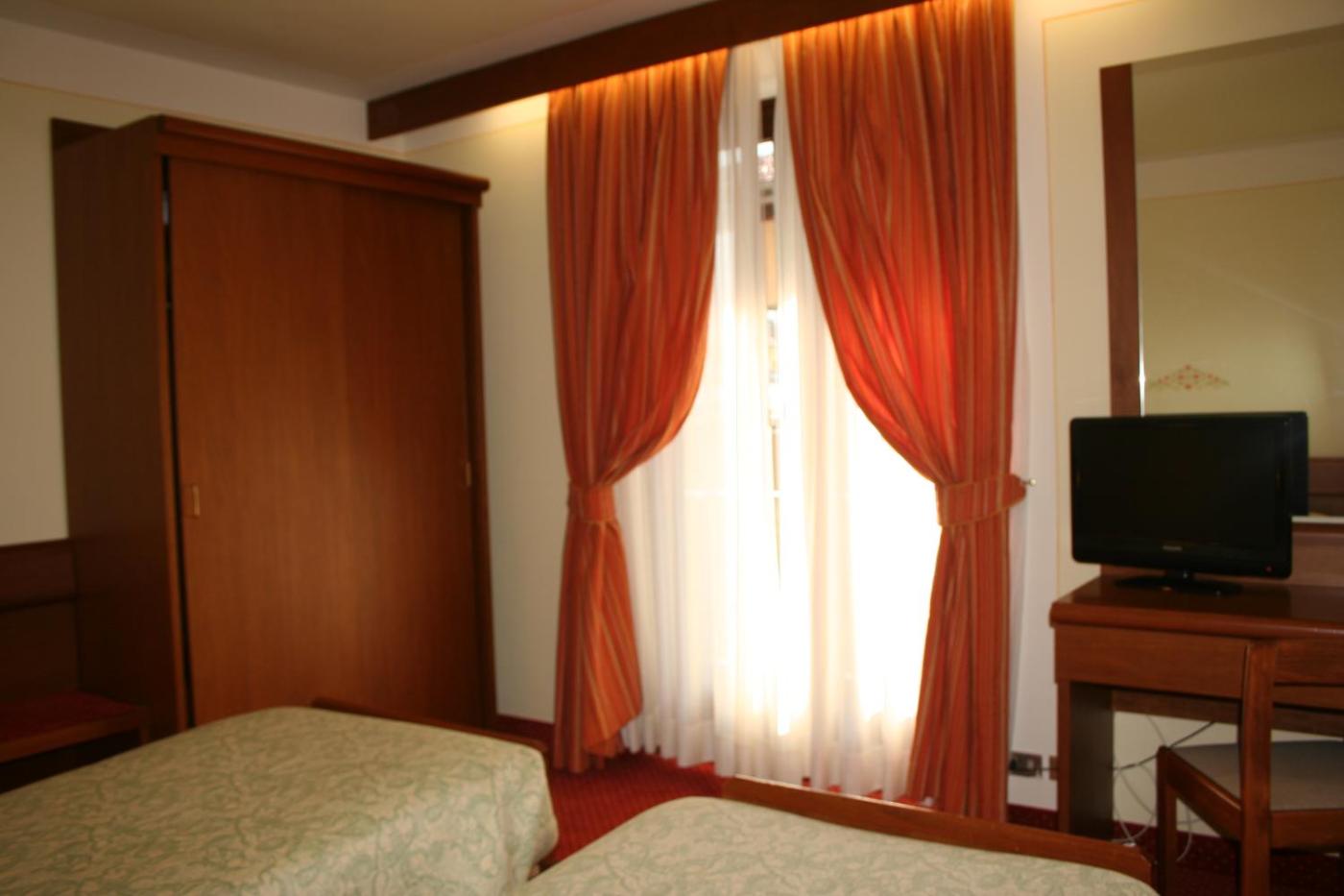 Camera Deluxe MatrimonialeDoppia con Letti Singoli. Ampia camera matrimonialedoppia con letti singoli dotata di minibar, cassaforte e bagno privato con doccia e bidet. La sistemazione dispone di TV satellitare a schermo piatto, bollitore elettrico, pavimento in parquet e riscaldamento. L’alloggio presenta 2 letti. ;