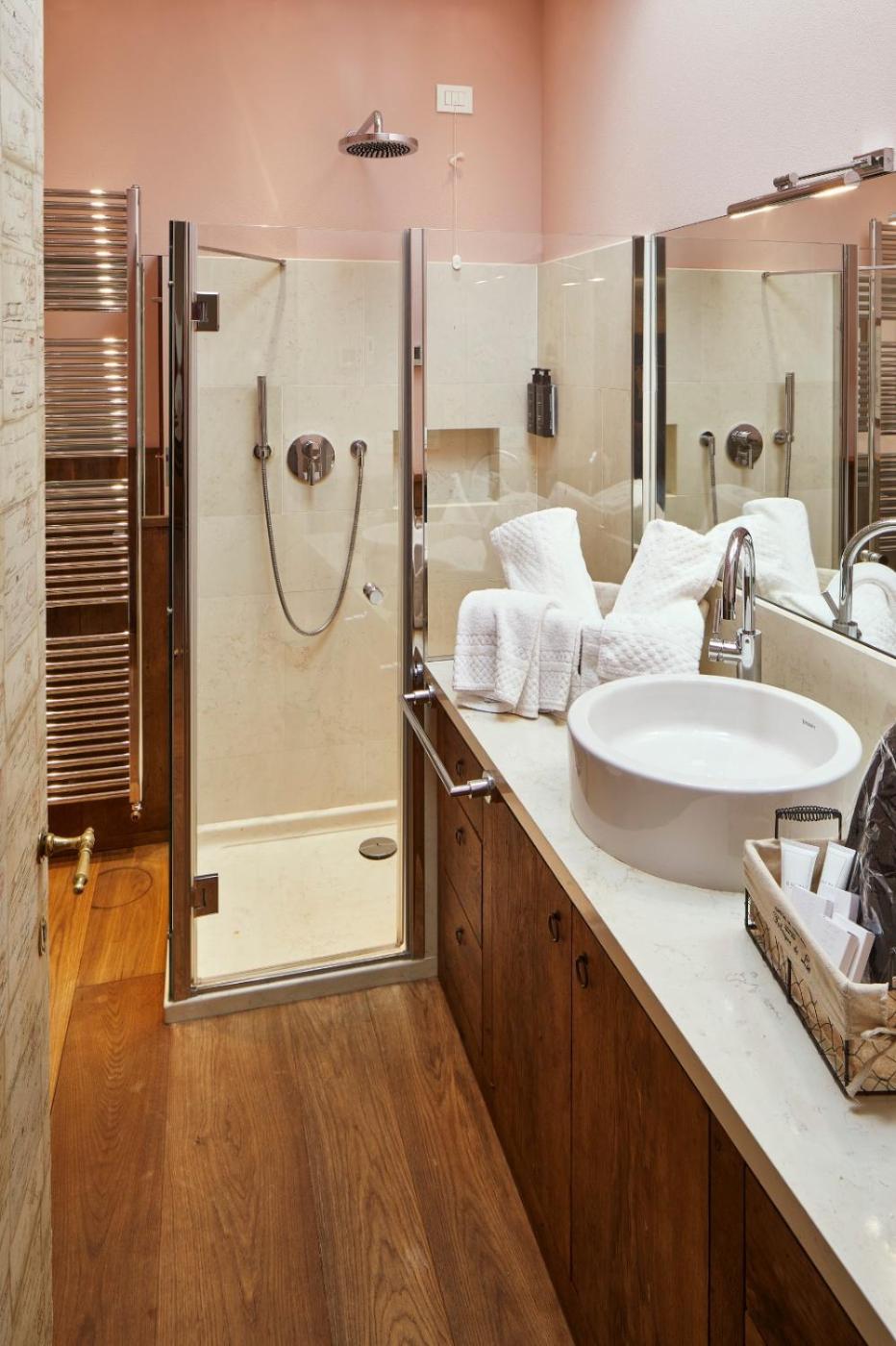 Camera Quadrupla Deluxe. Featuring free toiletries and bathrobes, this quadruple room includes a private bathroom with a shower, a bidet and a hairdryer. The quadruple room features air conditioning, a minibar, a wardrobe, parquet floors, as well as a TV. The unit has 3 beds. ;