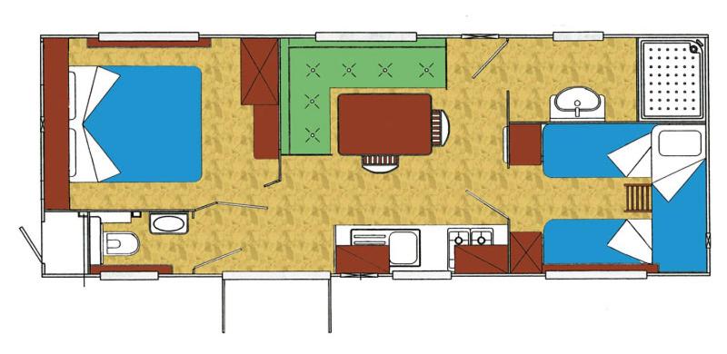 Bungalow Standard. Bungalow composto da 1 camera con due letti singoli, soggiorno con divano-letto e angolo cottura, e bagno con doccia e servizi igienici aggiuntivi. Alcune camere sono dotate di letti a castello aggiuntivi. Il WiFi è fruibile gratuitamente. La sistemazione include un ampio giardino privato attrezzato con tavolo, sedie, due sdraio, ombrellone e barbecue. ;